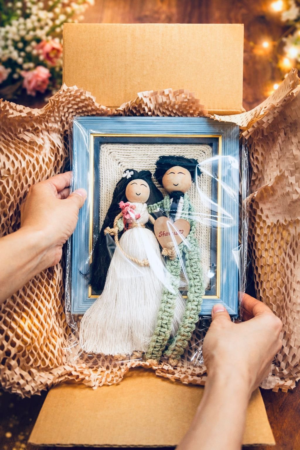 This handcrafted macramé expecting couple frame captures the magic of pregnancy—the quiet joy, the growing love, and the miracle on the way.